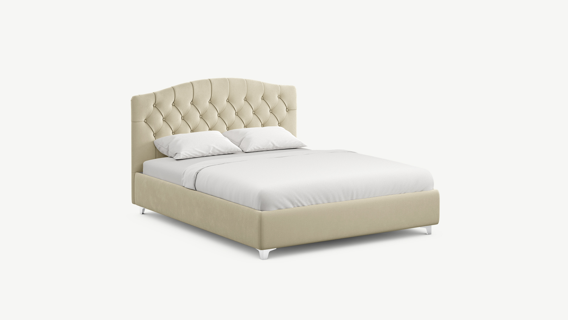 Кровать MOON 1157 создает ощущение праздника. Фигурное изголовье с классической каретной стяжкой формирует торжественный образ кровати, привнося в интерьер элементы дворцового стиля и роскоши.