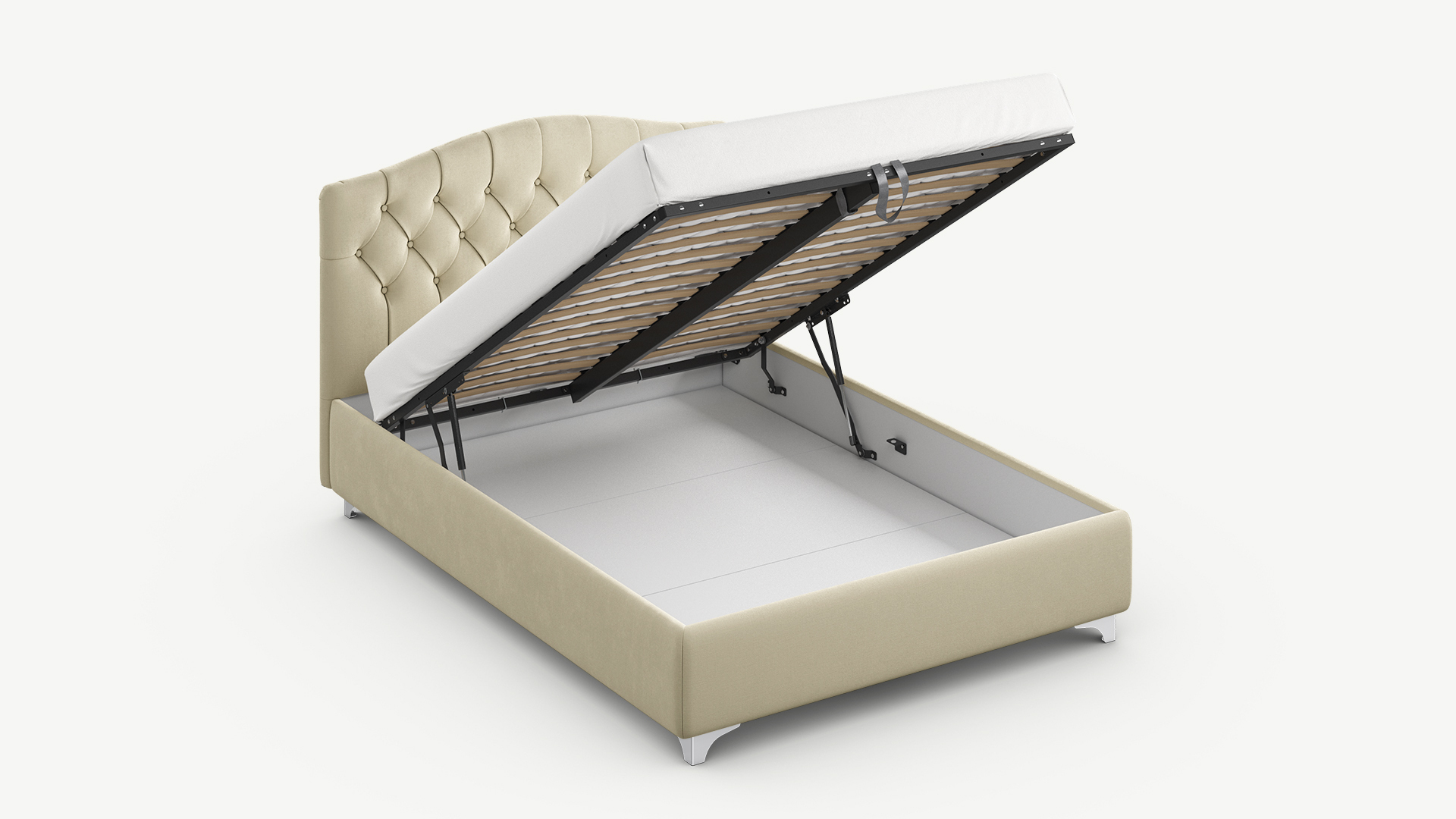 • Скрытая под основанием вместительная емкость без внутренних перегородок позволяет использовать всю площадь подкроватного пространства для хранения вещей.