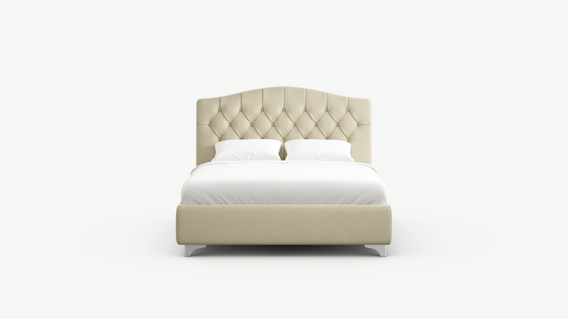 Кровать MOON 1157 создает ощущение праздника. Фигурное изголовье с классической каретной стяжкой формирует торжественный образ кровати, привнося в интерьер элементы дворцового стиля и роскоши.