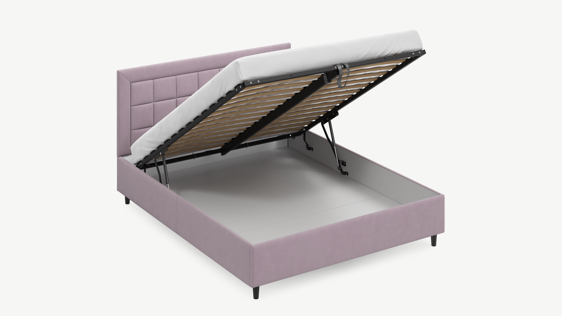 Вместительная емкость под кроватью без внутренних перегородок позволяет использовать для хранения вещей 100% пространства.