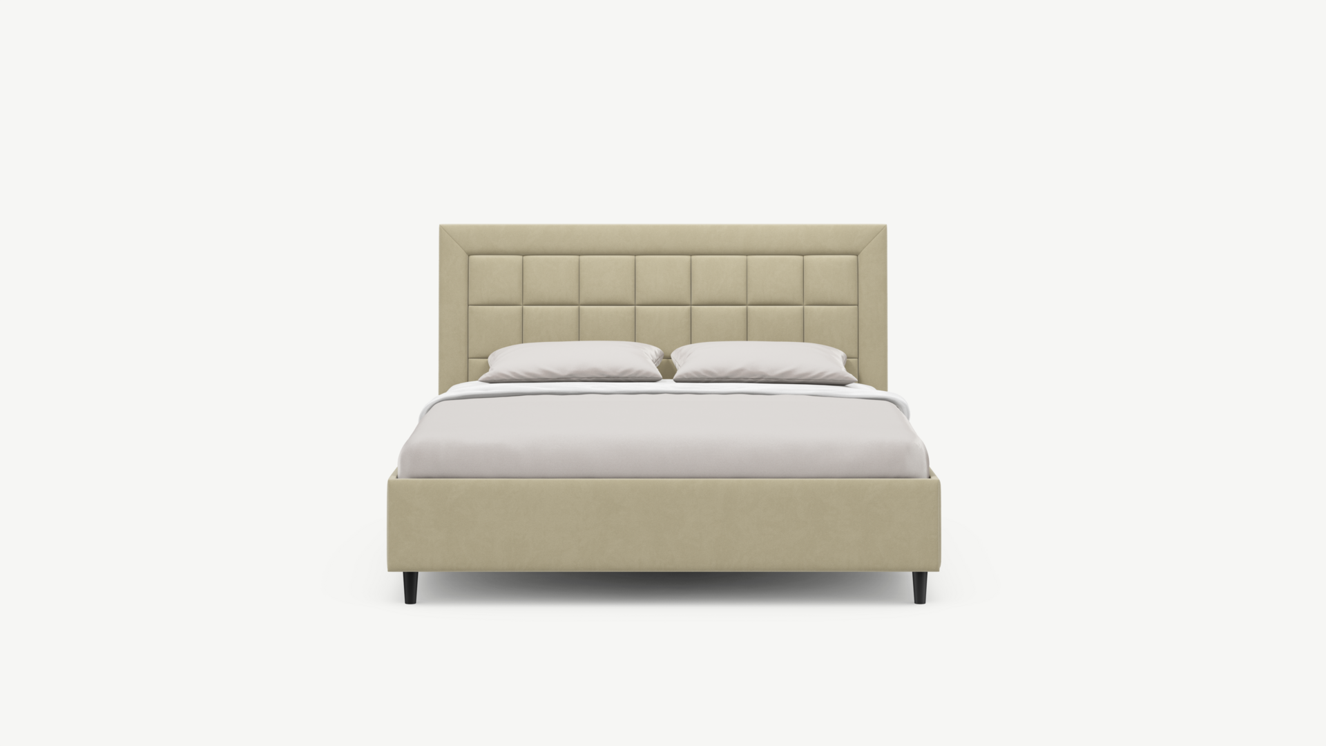 Кровать MOON FAMILY 1251 украшена объемной стежкой-рисунком. Особую выразительность стежка в крупный квадрат получает за счет глубины шва и фактурности проступающего рисунка. Помещенная в центр изголовья, стежка обрамлена тканью, словно картина – рамой. Формы MOON FAMILY 1251 оставлены максимально простыми. Едва заметные вертикальные шовчики на боковых царгах кровати добавляют образу шарма, удачно оттеняя уверенное звучание прямых и искусный декор изголовья.