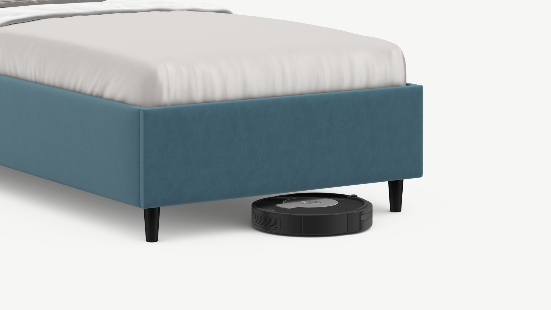 Благодаря высоким опорам под кроватью проходит робот-пылесос и легко проводится влажная уборка, что обеспечивает чистоту и порядок в доме.