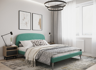 Кровать выполнена из хороших, качественных материалов, цвет красивый, обивка мягкая и ее можно без усилий очистить от пыли