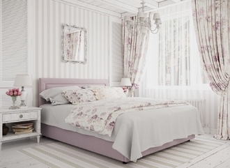 Фактура обивочного материала подбирается дизайнерами с учетом технологических и стилевых особенностей кровати.