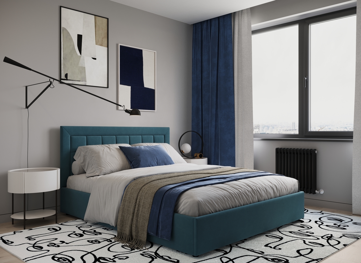 Фактура обивочного материала подбирается дизайнерами с учетом технологических и стилевых особенностей кровати.