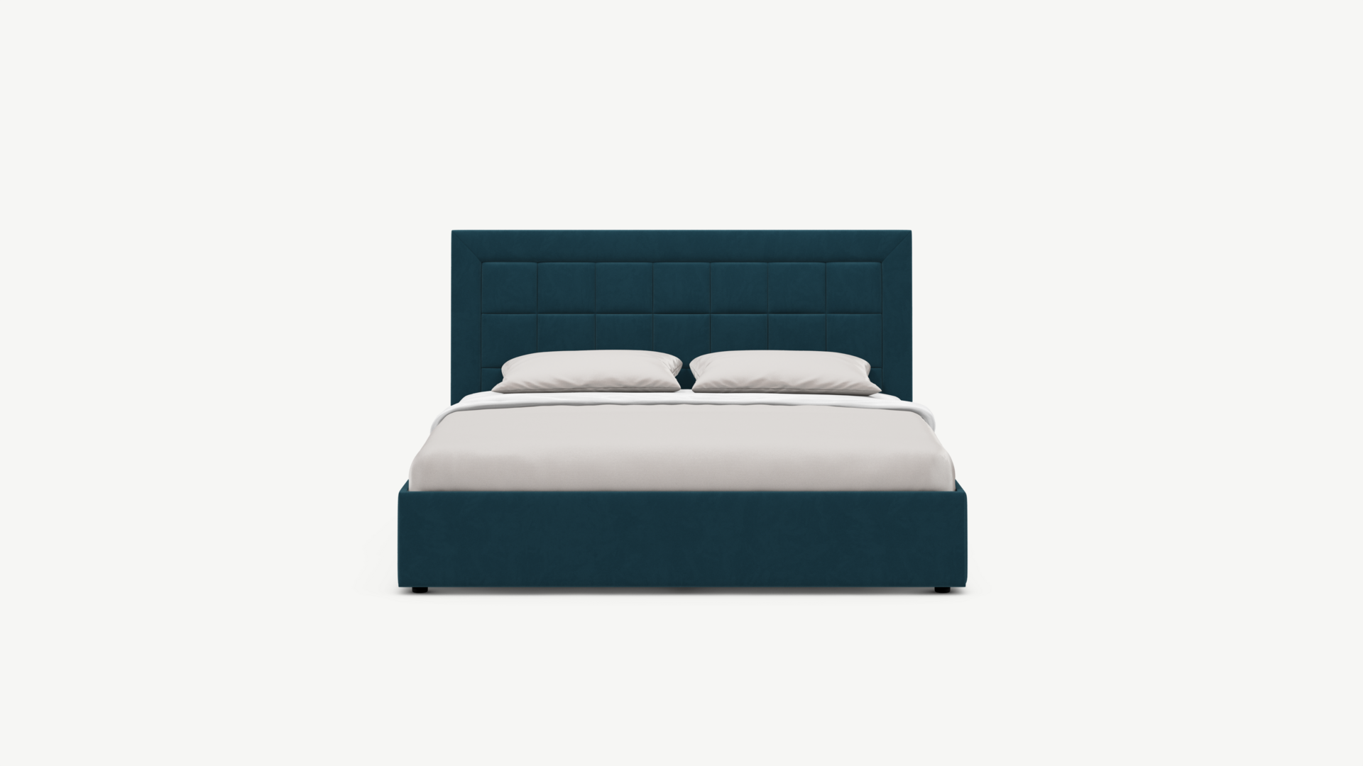 Стежка помещена в центр изголовья и обрамлена, словно картина. Объемные царги становятся гармоничным дополнением образа и завершают цельную фигуру кровати.