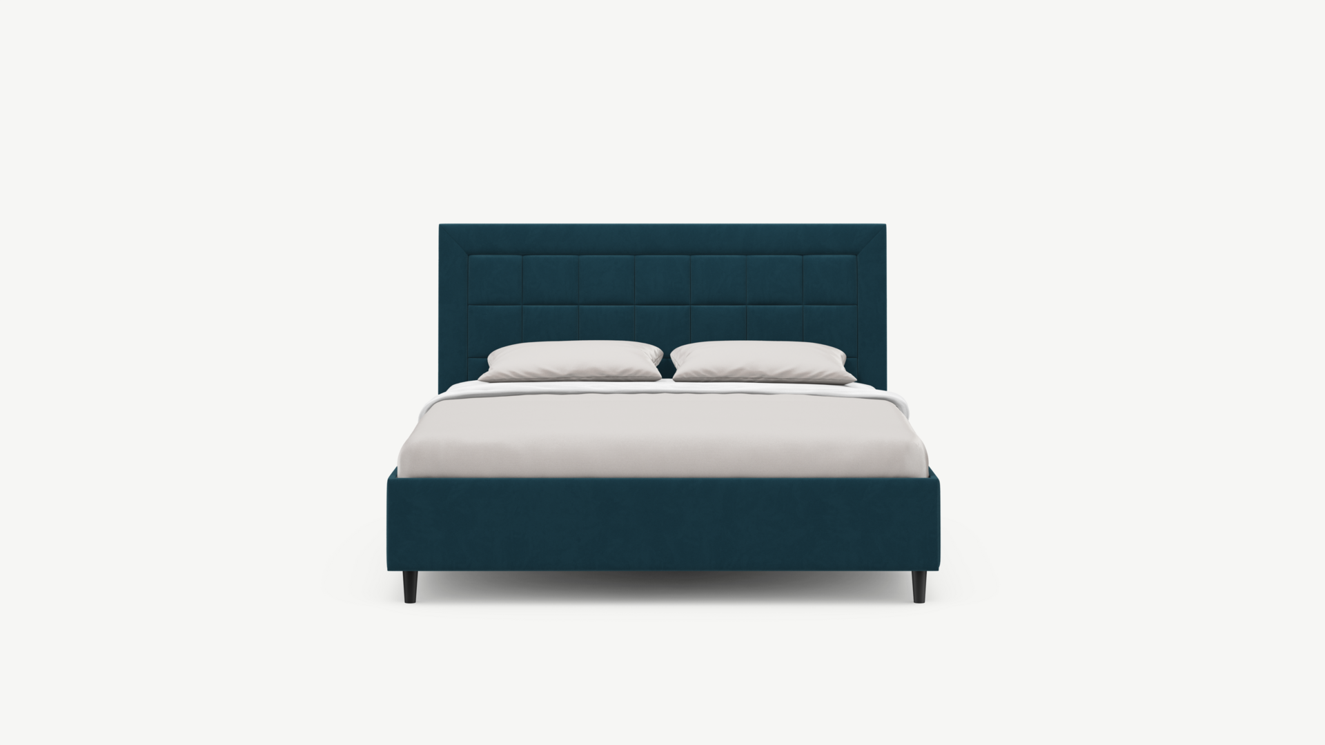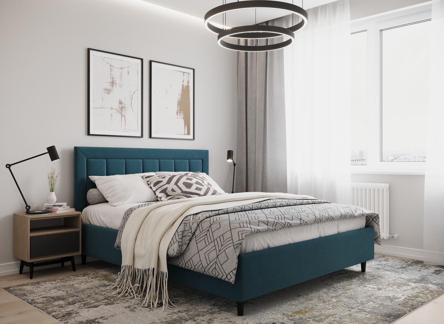 Стежка помещена в центр изголовья и обрамлена, словно картина. Объемные царги становятся гармоничным дополнением образа и завершают цельную фигуру кровати.