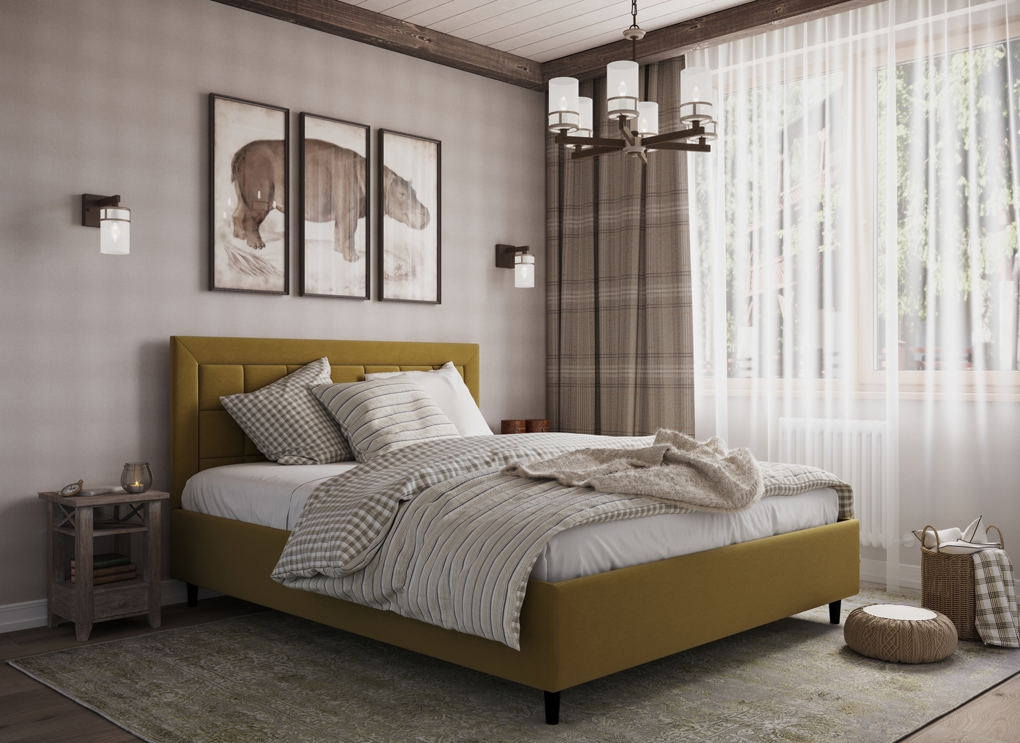 Стежка помещена в центр изголовья и обрамлена, словно картина. Объемные царги становятся гармоничным дополнением образа и завершают цельную фигуру кровати.
