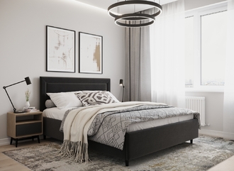 Рама, изголовье и царги надежно крепятся между собой, обеспечивая прочность и устойчивость кровати.