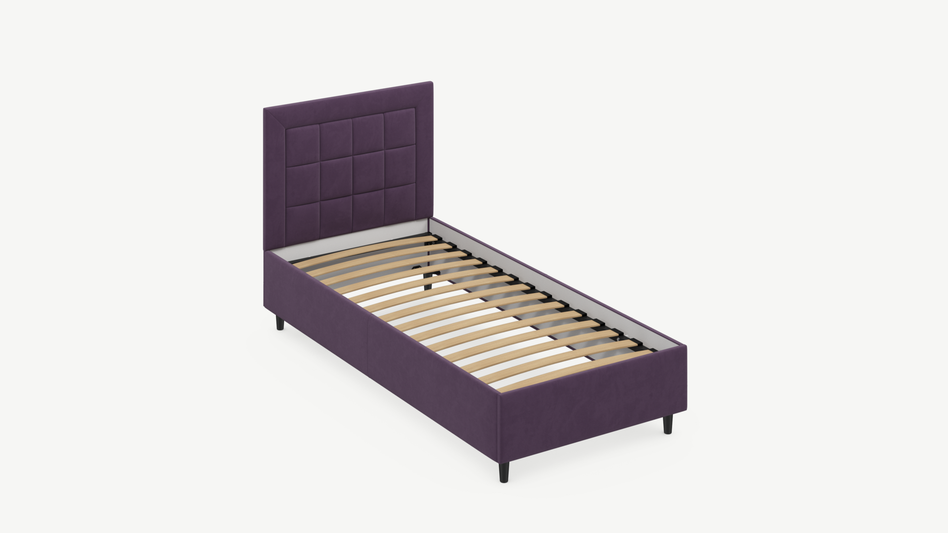 Изголовье декорировано рельефным рисунком стежки в крупный квадрат, получившим особую фактуру за счет глубины шва.