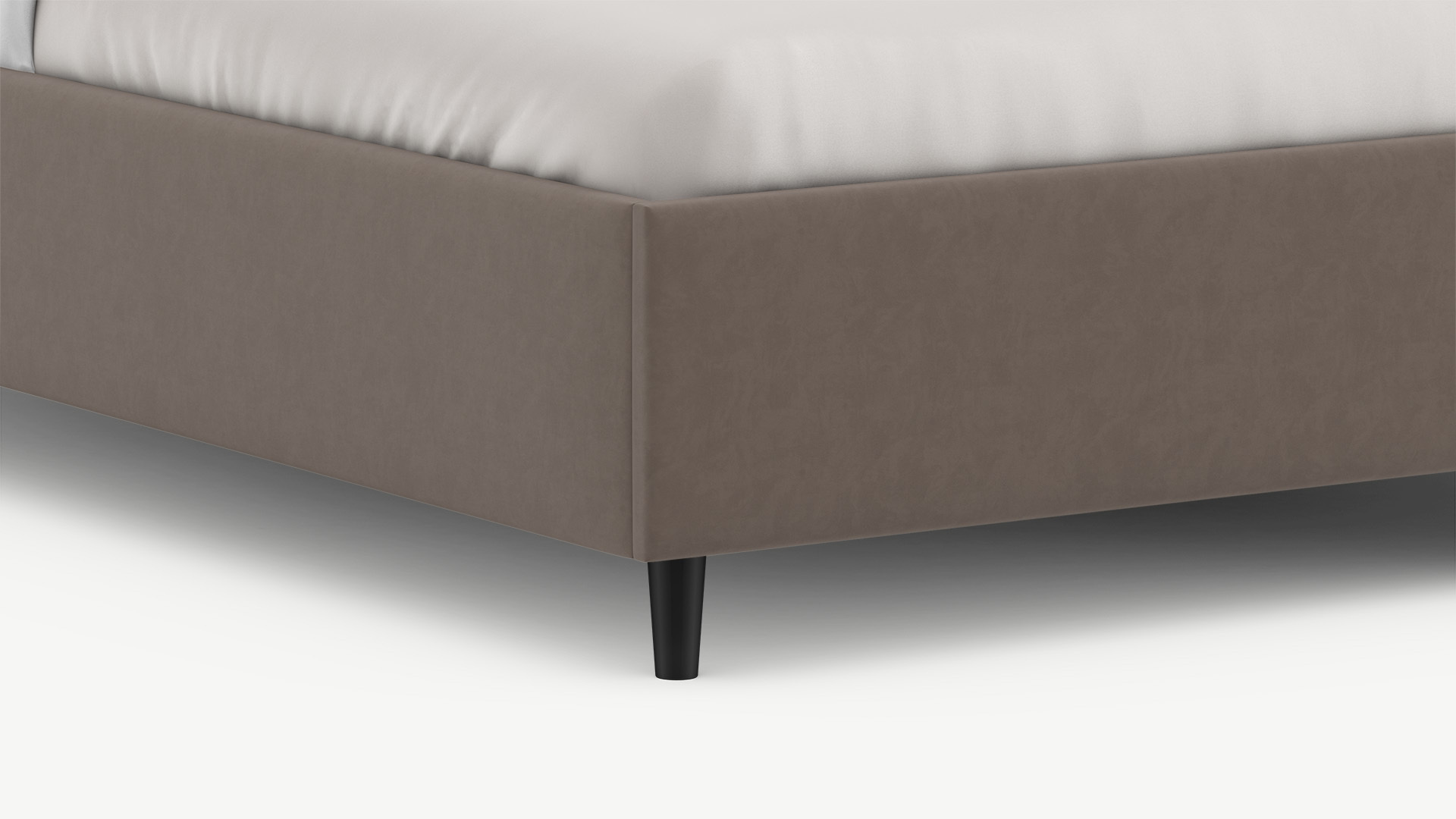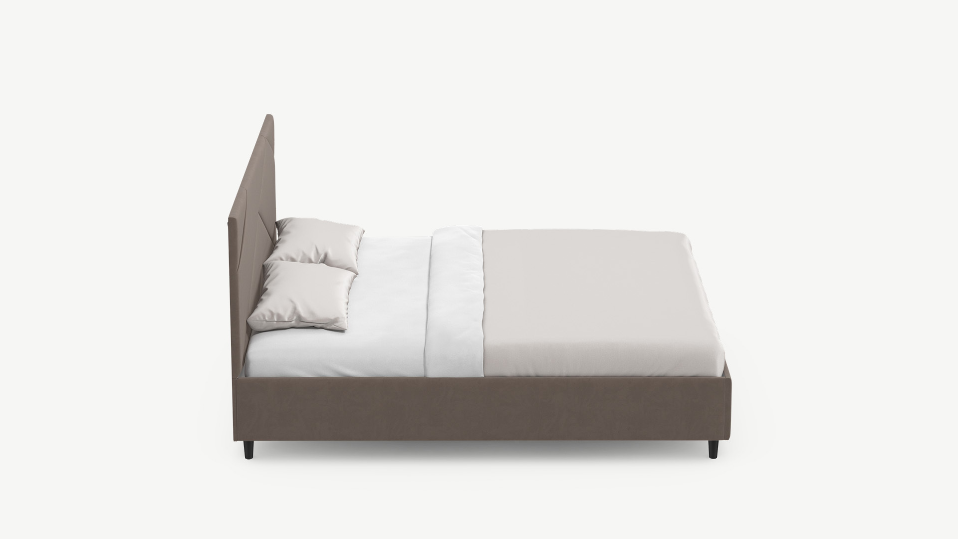 Элегантным и практичным акцентом служат скрытые карманы, расположенные по его углам. Лаконичные формы объемных царг создают единый гармоничный образ и фокусируют внимание на центральном текстурном элементе кровати.