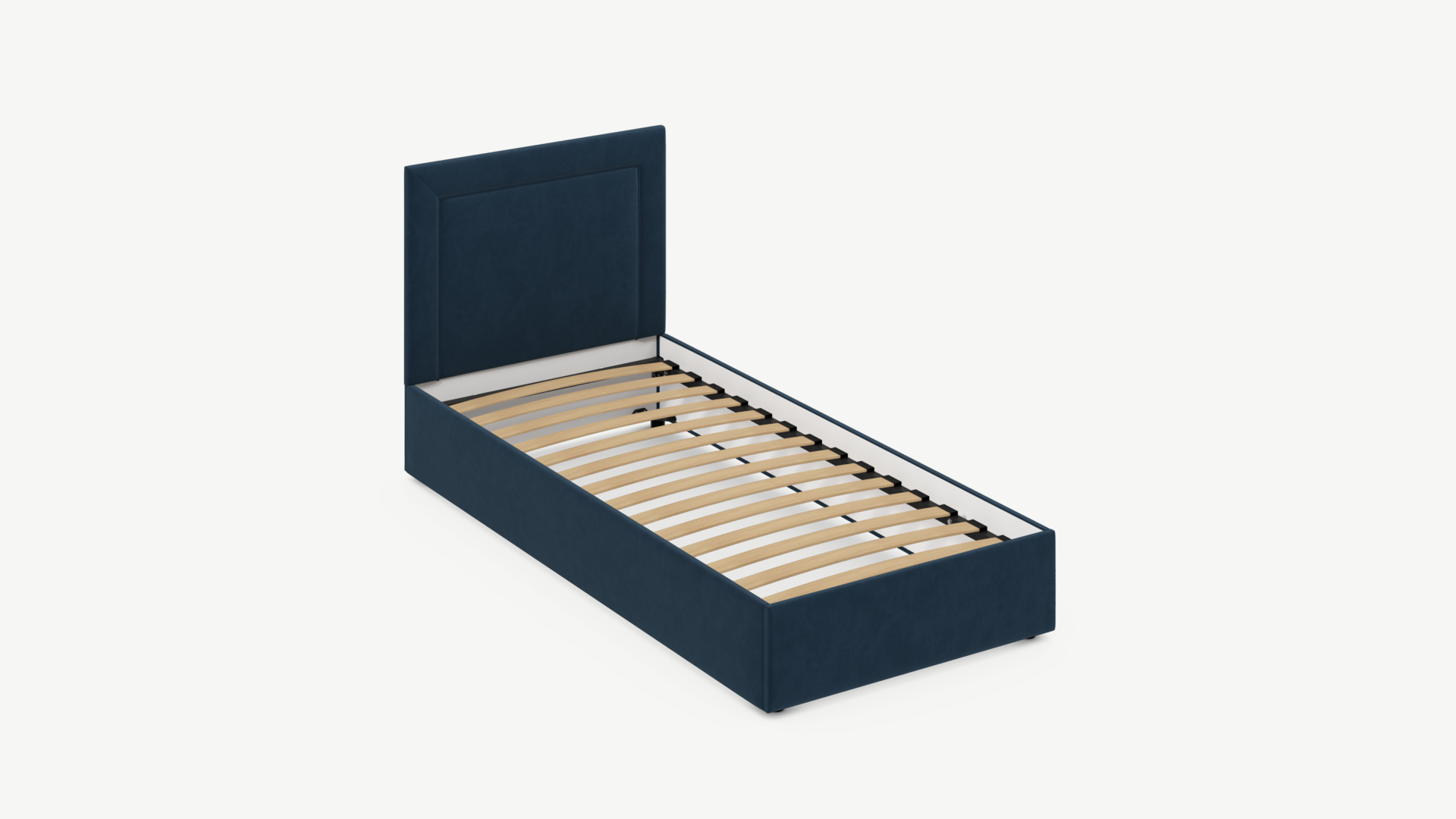 Вместительная емкость под кроватью без внутренних перегородок позволяет использовать для хранения вещей 100% пространства.