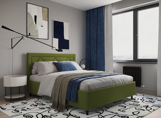Фактура обивочного материала подбирается дизайнерами с учетом технологических и стилевых особенностей кровати.