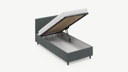 - Скрытая под основанием вместительная емкость без внутренних перегородок позволяет использовать всю площадь подкроватного пространства для хранения вещей.