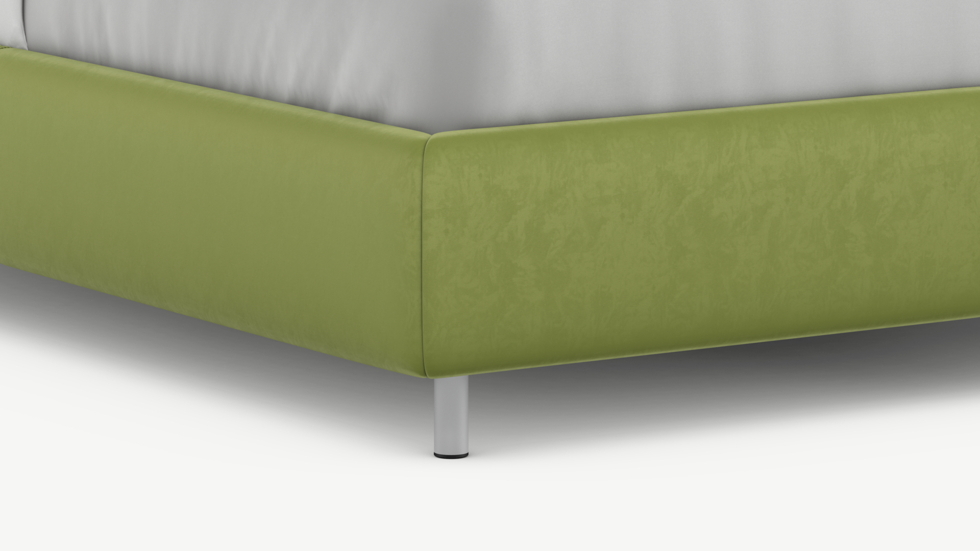 К кровати предлагается два варианта металлических опор на выбор — цилиндрической или фигурной формы. Фигурные опоры представлены с одним вариантом высоты 9 см, а цилиндрические опоры в двух вариантах — 9 см или 12 см на выбор.
