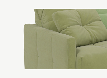 Красивый вид дивана со всех сторон. Спинка дивана, полностью облицованная обивочным материалом, придает изделию эстетичный внешний вид, завершает его образ и позволяет ставить диван в центре комнаты и/или зонировать пространство.