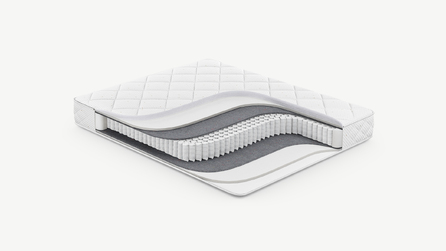 Надежно изолирует комфортные слои от соприкосновения с пружинным блоком и защищает материалы наполнения матраса от износа.