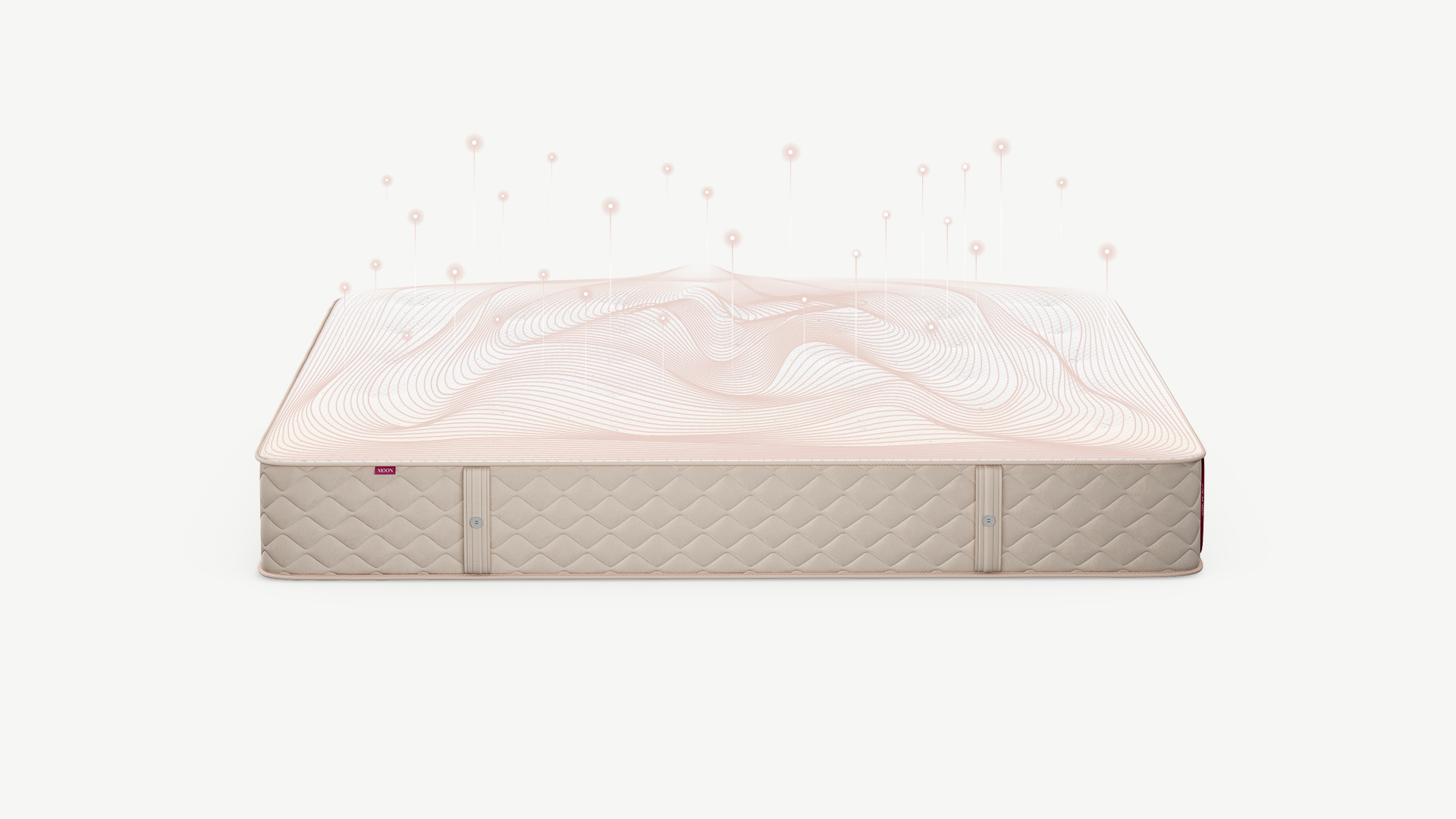 Состав пены минерализован частицами меди, которая предотвращает появление и распространение вирусов, поддерживая гигиену спального места. Обеспечивает упругую поддержку тела, воздействуя как множество микропружин, снимает лишнюю нагрузку с мышц и помогает расслабиться.